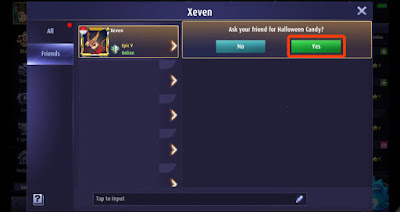 2. Buka menu chat di Akun Cadangan, pada pertanyaan "Ask your friend for halloween candy?" pilih "Yes"